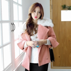 韩都衣舍冬装新款女装纯色翻领毛呢外套MQ2701