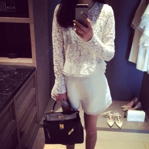 韩都衣舍秋装新款女装纯色长袖V领荷叶边T恤GY2288