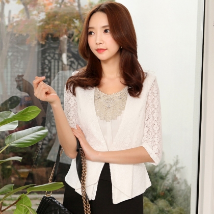 女式通勤短款时尚五分袖半开领蕾丝短外套UB3150【SONEED 2014春装新款】