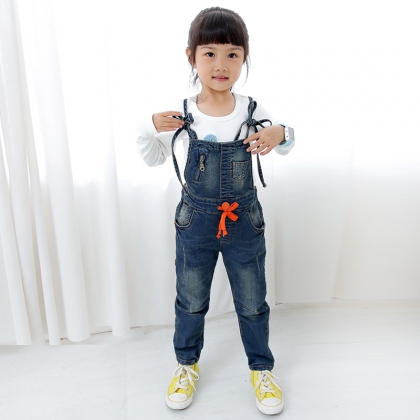 女童 春装新款休闲牛仔系带背带裤ZH2022【MiniZaru 2014春款】